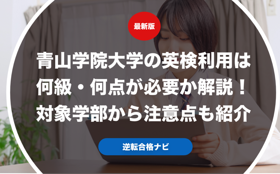 青山学院大学の英検利用は何級・何点が必要なのか具体的に解説します。また実際に青山学院大学で英検利用ができる学部からそれぞれの英検利用で合格するための注意点も紹介します。さらに実際に青山学院大学志望の受験生や保護者向けに英検利用の優遇措置やおすすめの受験戦略についても合わせて解説します。