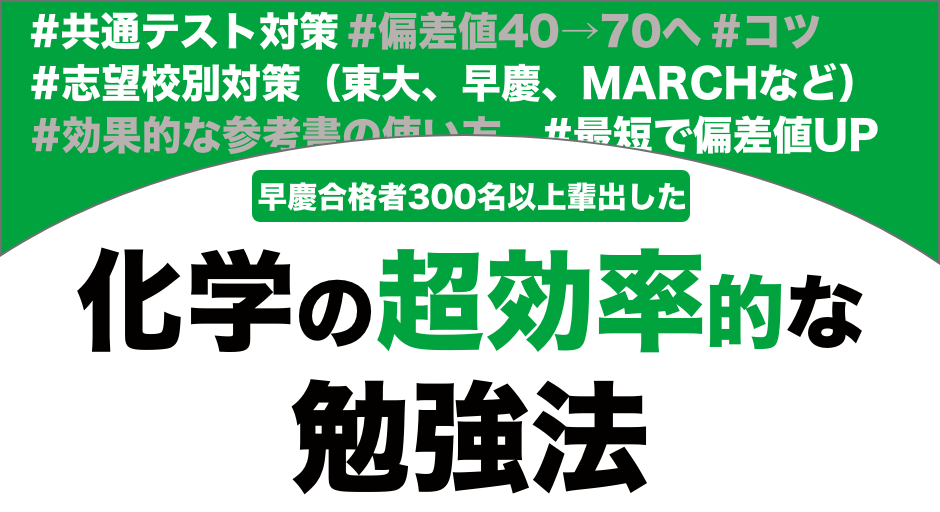 また志望校別の東大、京大、早稲田や難関大志望におすすめの化学の勉強法から実際にやってよかった化学の勉強法から共通テスト対策におすすめの化学の勉強法も解説します。