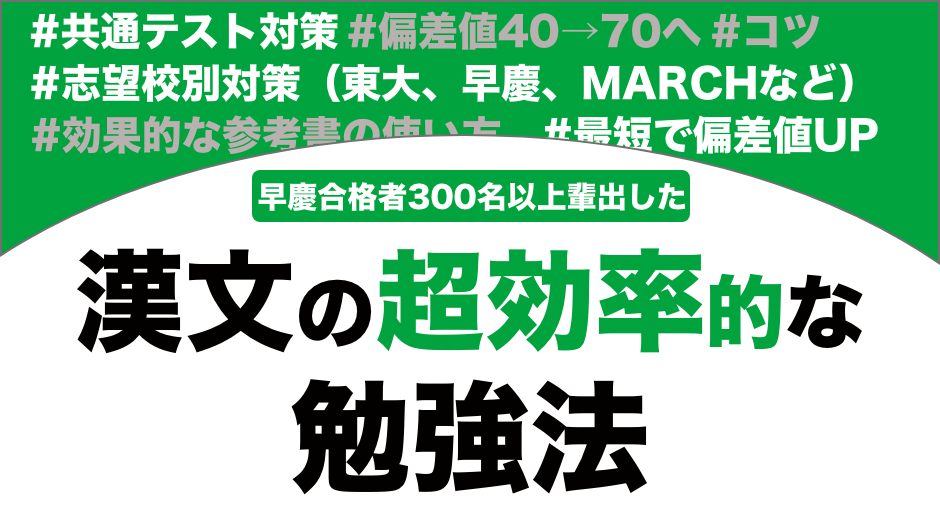 また志望校別の東大、京大、早稲田や難関大志望におすすめの漢文の勉強法から実際にやってよかった漢文の勉強法から共通テスト対策におすすめの漢文の勉強法も解説します。