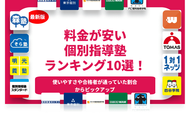 おすすめの安い個別指導塾をランキング形式で12個紹介します。