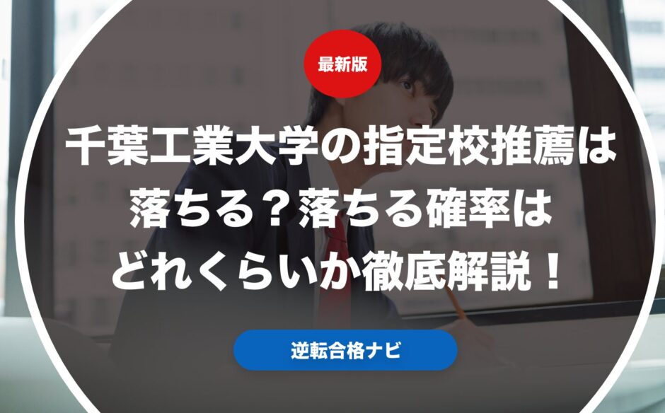 千葉工業大学の指定校推薦は落ちるのかどうかから実際の落ちる確率を解説します。千葉工業大学の指定校推薦の落ちる原因から実際の受験生のデータをもとに落ちる可能性を解説します。千葉工業大学の指定校推薦において落ちる可能性を下げるための対策方法についても具体的に紹介します。千葉工業大学の指定校推薦で大学受験を考えている受験生の方や保護者の方はぜひ参考にしてください。