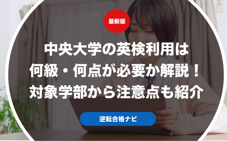 中央大学の英検利用は何級・何点が必要なのか具体的に解説します。また実際に中央大学で英検利用ができる学部からそれぞれの英検利用で合格するための注意点も紹介します。さらに実際に中央大学志望の受験生や保護者向けに英検利用の優遇措置やおすすめの受験戦略についても合わせて解説します。