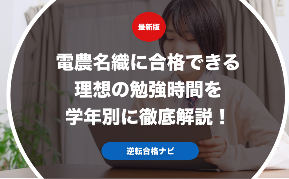 塾選ジャーナルの調査によると、電農名織合格者の高校3年生時点での勉強時間は、自宅学習と塾での学習を合わせて1日4時間以上を確保していた受験生が大多数を占めています。平日は4時間から5時間、休日は8時間から10時間程度の勉強時間が平均的でした。