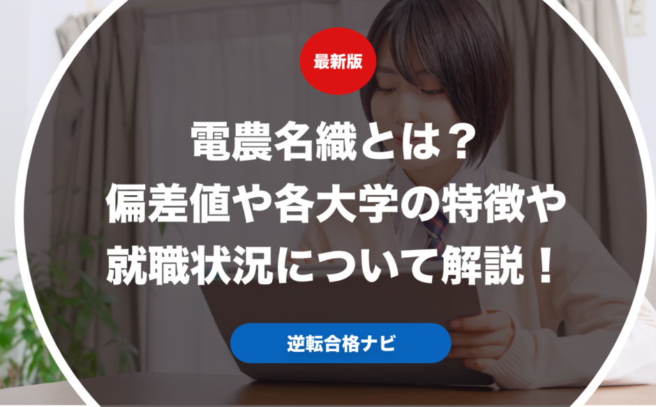 電農名織とはどんな大学群なのかや電農名織がどこにあるかや電農名織の難易度や偏差値についてだけでなく就職に強いのかやFランク評価を受けるのかどうかなど電農名織を大学別にそれぞれ解説します。電農名織の偏差値や電農名織の下が気になる人はぜひ参考にしてみてください。