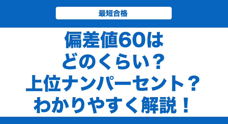 偏差値50が平均であることを考えると偏差値60はかなり高い学力を持っていると言えます。 全国の受験生のうち約6人に1人しか到達できないレベルです。 大学入学共通テストでは約8割の得点を取れる実力に相当します。
