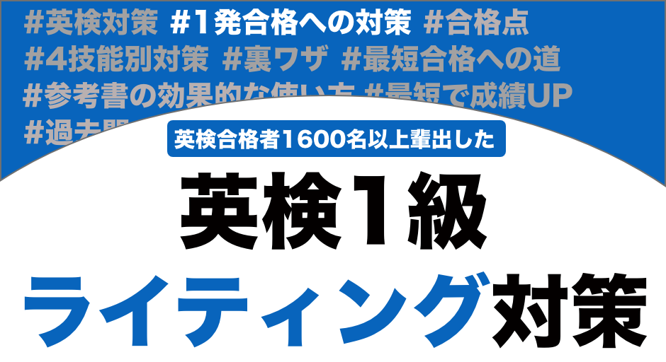 逆に、英検1級のライティングで満点近い点数を取れれば、他の技能で多少失点しても合格できる可能性が高まります。英検1級のライティングは対策次第で確実に点数を上げられる技能であるため、しっかり準備することが英検1級合格への近道となります。