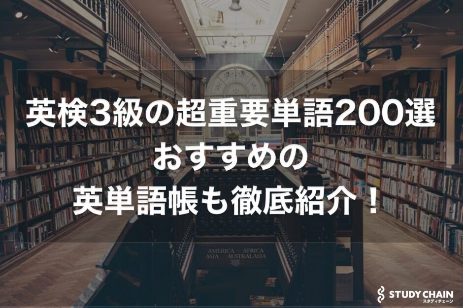 英検3級に頻出の超重要単語一覧200選を紹介します。また、英検3級対策におすすめの英単語帳や英単語アプリも紹介します。英検3級に求められる単語数から英検3級のリーディングの語彙問題の攻略のための英検3級の英単語のおすすめの覚え方まで具体的に解説します。