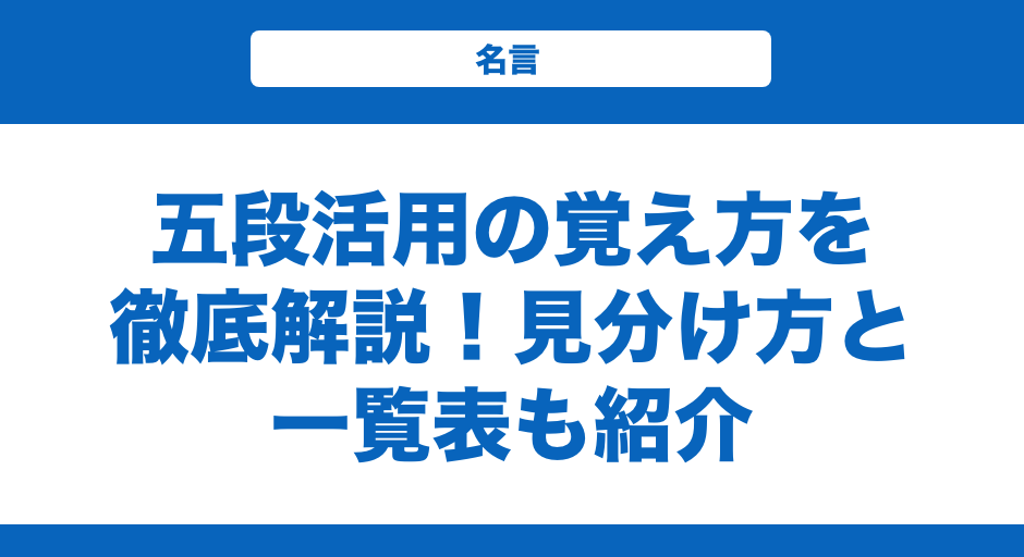 古文の五段活用の覚え方を解説します。古文の五段活用の見分け方から古文の五段活用の一覧表も合わせて紹介します。古文の五段活用の動詞の覚え方から上一段活用と下一段活用の覚え方も合わせて解説します。古文の五段活用を中学生でもわかりやすく理解できるよう解説します。