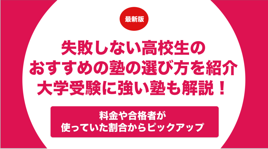 この記事では、大学受験をする高校生におすすめの塾・予備校を10個を選んで紹介しました。