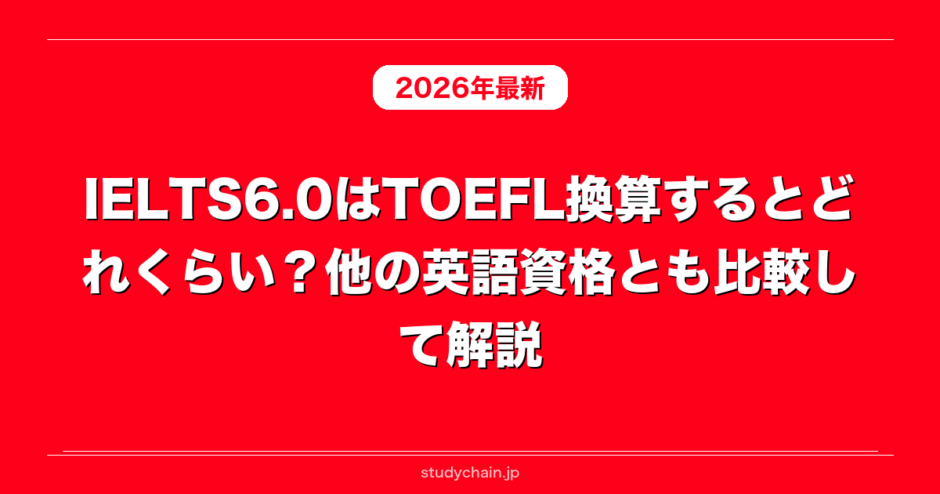 ホームIELTS対策IELTS6.0はTOEFL換算するとどれくらい?他の英語資格とも比較して解説 2026年4月15日 SHARE ポスト シェア はてブ LINE IELTS6.0はTOEFLに換算するとスコアは英検何級になるのかを具体的に解説します。またIELTS6.0のスコアが英検5級、英検4級、英検3級、英検準二級、英検2級、英検準一級、英検1級にどれくらいのスコアが該当するのか解説します。さらに実際にIELTS6.0の1次試験、2次試験それぞれリーディング、リスニング、ライティング、面接のレベルもTOEFLと比較して解説します。IELTSコーチ 塾長【この記事の監修者:IELTSコーチ塾長竹本明弘】 これまでIELTSで目標スコア達成に向けて小学生から大人まで500名以上の方に対して様々な形で伴走してきました。リスニング、リーディング、ライティング、スピーキングのそれぞれの対策からIELTSでの目標達成に向けて実際にやって良かったことや実際の難易度なども含めてわかりやすく解説します。 IELTS6.0のレベルは大学中級レベルの英語力が求められる試験です。 これからIELTS6.0のレベルと難易度を確認しながら、TOEFLとの換算についても詳しく解説していきます。 とくにIELTS6.0とTOEFLの違いや、それぞれのスコアがどのような英語力を意味するのかについて丁寧に説明するので、IELTS6.0を目指している方はしっかり確認してください。IELTS6.0のレベルと難易度 IELTS6.0のレベルは、大学入試における偏差値55から60程度の英語力が求められる試験です。 CEFRという国際的な語学指標においては、IELTS6.0はB2レベルに相当し、日常的なコミュニケーションや幅広いテーマの文章を扱える英語力が求められます。 IELTS6.0に合格するためには、約6000から7000語程度の英単語力が必要とされており、日本人受験者の平均スコアが5.8から5.9であることを考えると、IELTS6.0はその平均をわずかに上回る実力が問われる試験と言えます。IELTS6.0のレベルはTOEFL換算で何点? IELTS6.0のレベルはTOEFLiBTにおいては、73点から94点程度に相当するレベルの英語試験です。 またTOEFL L&Rのスコアに換算すると、740点から900点程度のレベルに値します。 IELTS6.0とTOEFLはどちらも英語の総合的な能力を測定する試験ですが、出題形式や求められるスキルに違いがあるため、スコア換算はあくまでも目安として参考にするようにしてください。IELTS6.0の難易度について IELTS6.0の難易度はTOEFLiBTにおいては73点から94点程度の換算となり、英語の基礎力をしっかりと持っている方が挑戦するレベルの試験です。 日本人受験者の平均スコアが5.8から5.9程度であることからも、IELTS6.0は日本人にとってそれほど簡単ではないことがわかります。 IELTS6.0のレベルは英検準1級から英検1級に相当する難易度ともされており、受験者の英語力によっては相応の準備期間と学習が必要です。IELTS6.0はTOEFL換算すると何点? IELTS6.0はTOEFLiBT換算では73点から94点程度に相当します。 公式な換算表は存在しませんが、CEFRを基準として比較すると、IELTS6.0はB2レベルに対応し、TOEFLiBTで73点から94点が一般的な目安とされています。 TOEFLiBTの満点は120点であるため、IELTS6.0に相当する73点から94点という範囲は、全体のおよそ60%から78%程度のスコアに当たります。IELTS6.0とTOEFLの求められる力の違い IELTS6.0とTOEFLはいずれも英語の4技能を測定しますが、それぞれの試験で求められるスキルの質が異なります。 IELTS6.0のリスニングでは、主にイギリス英語やオーストラリア英語のアクセントが使われ、講義形式の長文音声への対応力が問われます。 一方でTOEFLiBTのリスニングはアメリカ英語が中心であり、大学講義形式の内容が多いため、アクセントへの慣れや背景知識の有無がスコアに影響することもあります。IELTS6.0に合格する英語力でTOEFLiBTは何点取れる? IELTS6.0に合格できる英語力があれば、TOEFLiBTでは73点から90点前後のスコアが期待できます。 ただし、IELTS6.0で高いスコアを持っていても、TOEFLiBTの問題形式に慣れていなければスコアが低くなることがあります。 そのため、IELTS6.0からTOEFLへの切り替えを検討している場合は、TOEFLiBT固有の問題形式に慣れるための対策が別途必要になります。IELTS6.0のリーディングのレベルと難易度をTOEFLと比較 IELTS6.0のリーディングのレベルは、TOEFLiBTのリーディングと比較して語彙の難易度がやや高い傾向があります。 IELTS6.0のリーディングでは3つのパッセージを60分で読み解く必要があり、1パッセージあたりの語数はおよそ900語程度です。 TOEFLiBTのリーディングも複数のパッセージを扱いますが、IELTS6.0と異なりTRUE/FALSE/NOT GIVENのような独自の問題形式はなく、選択肢形式が中心となっています。IELTS6.0のリーディングで求められる力 IELTS6.0のリーディングでは、学術的な内容の長文を読んで正確に内容を把握する力が求められます。 とくにIELTS6.0に特有のNOT GIVENという選択肢に慣れることが、リーディングのスコアを上げる上で非常に重要なポイントです。 TOEFLiBTのリーディングでは大学の講義テキストのような文章が多く出題され