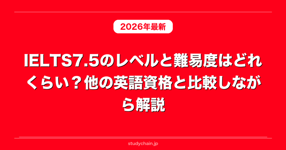 IELTS7.5のレベルと難易度を英検・TOEIC・TOEFLなどの英語資格と徹底比較しながら解説します。リスニング・リーディング・ライティング・スピーキング各技能のレベルや換算スコアも詳しく紹介します。