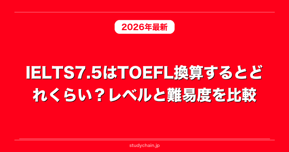 IELTS7.5はCEFRのC1レベルに相当し、TOEFLのiBTスコアでは95点から114点が同じくC1レベルとされているため、IELTS7.5とTOEFL iBT100点前後はほぼ同等の英語力の指標として活用されています。