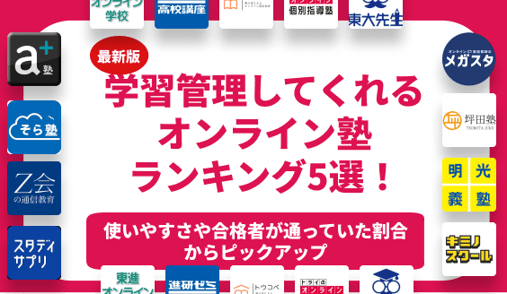 数ある学習管理型のオンライン塾の中でも口コミや評価をもとにおすすめの学習管理してくれる大学受験におすすめのオンライン塾を紹介します。