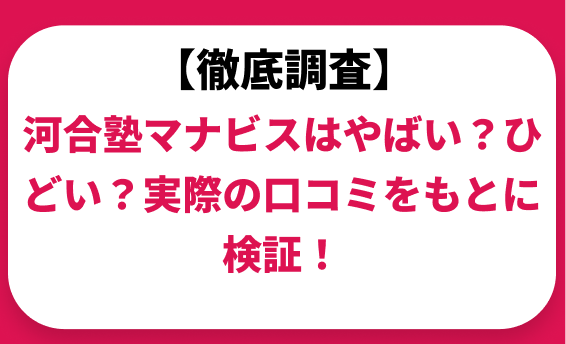 河合塾マナビスの指導内容についての実際の悪いもしくはやばいと言われている口コミを紹介します。