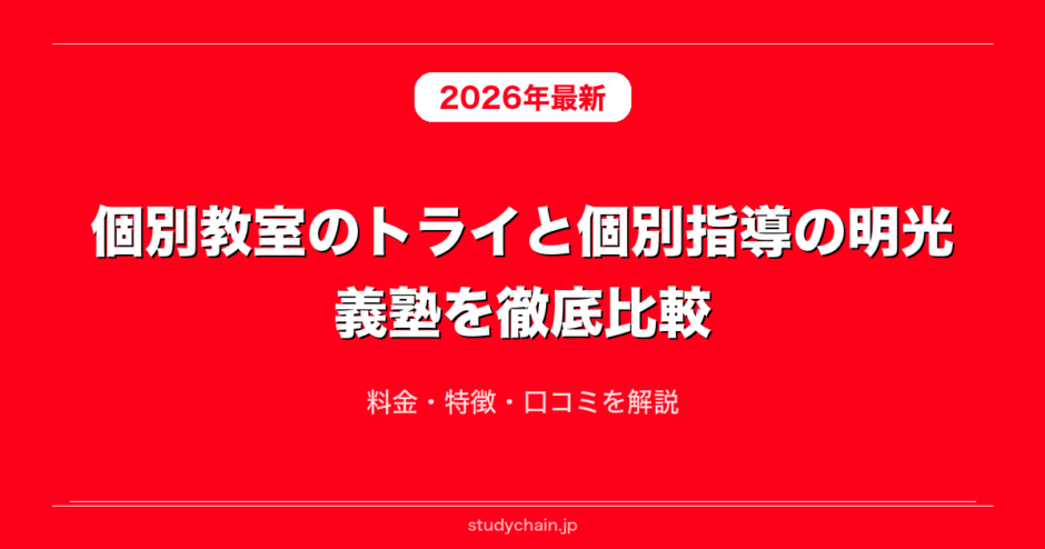 個別教室のトライは全国147万人の指導実績があり、大学受験や難関校対策に定評があります。個別指導の明光義塾は内申点アップ指導に強く、高校受験で内申点を重視する方に向いています。志望校の難易度や受験スタイルに合わせて選びましょう。