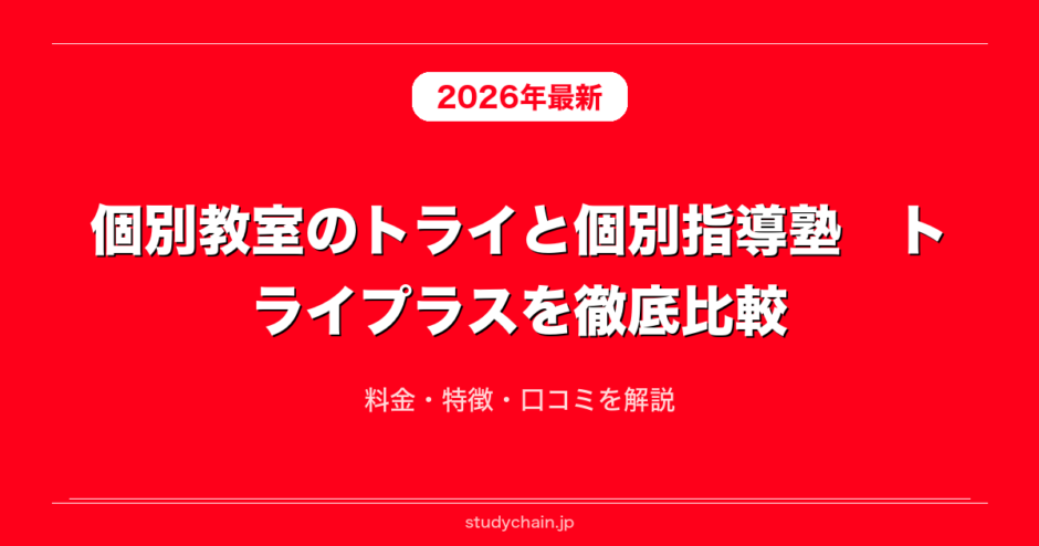 個別教室のトライと個別指導塾 トライプラスを料金や口コミや指導体制や指導方針など項目ごとに徹底解説します。個別教室のトライと個別指導塾 トライプラスを検討している方に向けてそれぞれどういう方におすすめなのかや個別教室のトライと個別指導塾 トライプラスの違いやメリットやデメリットについてもそれぞれ解説します。個別教室のトライと個別指導塾 トライプラスの良い口コミと悪い口コミも比較しながら紹介するのでぜひ実際の声も含めて参考にしてみてください。