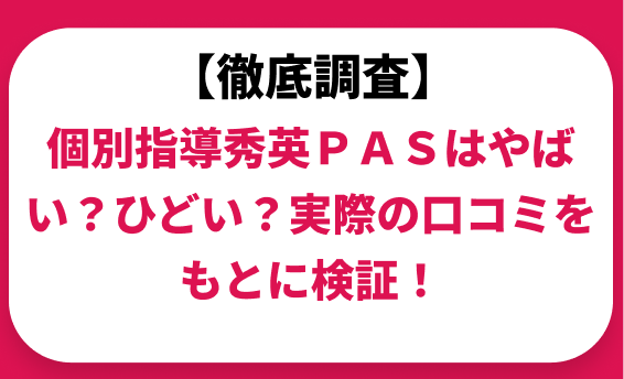 個別指導秀英PASはやばい?ひどい?実際の口コミと評判をもとに徹底検証!