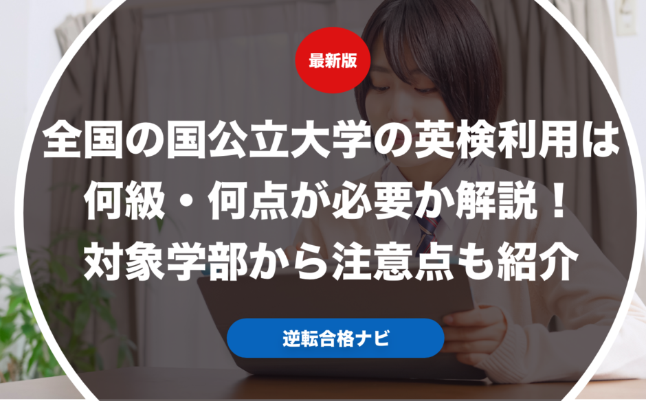 全国の国公立大学の英検利用は何級・何点が必要なのか具体的に解説します。また実際に全国の国公立大学で英検利用ができる学部からそれぞれの英検利用で合格するための注意点も紹介します。さらに実際に全国の国公立大学志望の受験生や保護者向けに英検利用の優遇措置やおすすめの受験戦略についても合わせて解説します。