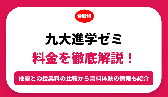 九大進学ゼミの料金を授業料と入会金と月謝など年間にかかる費用も含めて解説します。他の集団塾の料金とも比較しながら九大進学ゼミの料金は高いのか安いのかについても解説します。九大進学ゼミの料金や費用を正しく知った上で入塾を検討したいという方はぜひ参考にしてみてください。