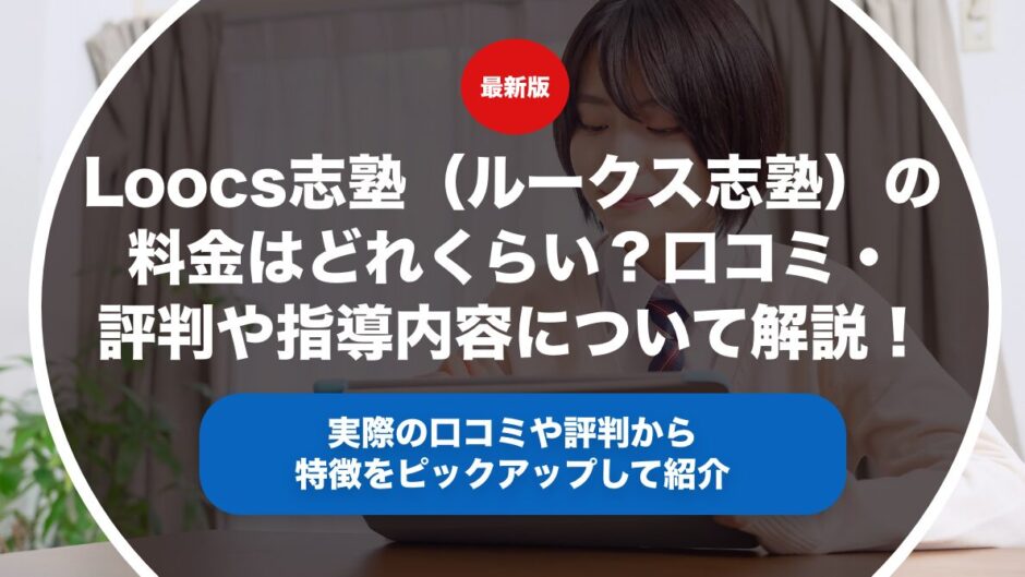 loocs志塾(ルークス志塾)の料金について入会金や月謝や授業料や教材費用についてそれぞれ解説します。また実際の口コミや評判をもとにloocs志塾(ルークス志塾)の指導内容の特徴やどんな人におすすめの塾なのかどうか具体的に解説します。loocs志塾(ルークス志塾)の入塾を検討しているという方はぜひ参考にしてみてください。