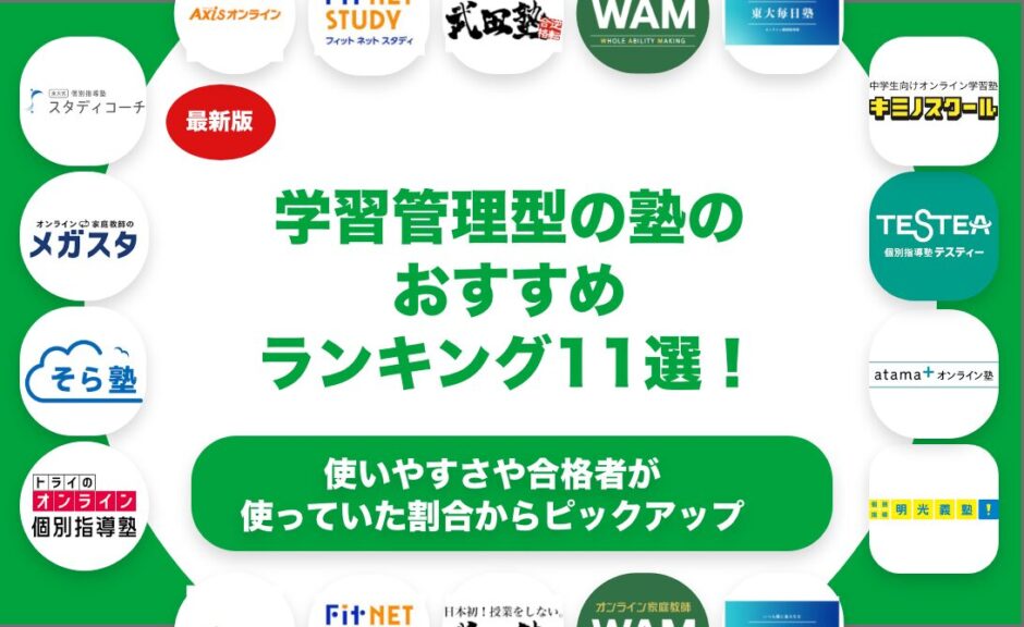 学習管理型の塾をおすすめのランキング形式で10個紹介します。学習管理型の塾を探している方におすすめの選び方や選ぶ上でのポイントも合わせて解説します。学習管理型の塾を料金や特徴で比較しながら解説します。学習管理型の塾の中でも自分に合ったものを見つけたいという方はぜひ参考にしてみてください。