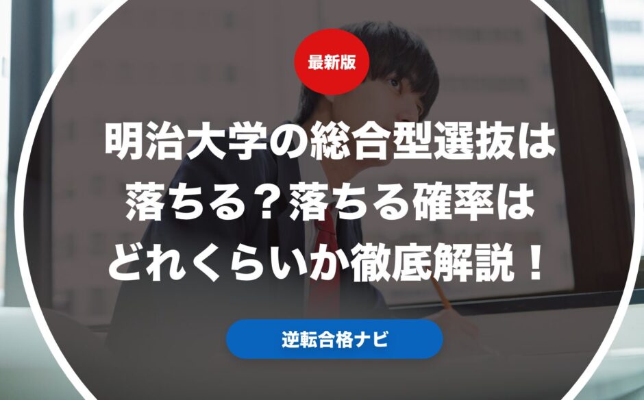 明治大学の総合型選抜は落ちるのかどうかから実際の落ちる確率を解説します。明治大学の総合型選抜の落ちる原因から実際の受験生のデータをもとに落ちる可能性を解説します。明治大学の総合型選抜において落ちる可能性を下げるための対策方法についても具体的に紹介します。明治大学の総合型選抜で大学受験を考えている受験生の方や保護者の方はぜひ参考にしてください。