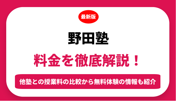 野田塾の料金を授業料と入会金と月謝など年間にかかる費用も含めて解説します。他の集団塾の料金とも比較しながら野田塾の料金は高いのか安いのかについても解説します。野田塾の料金や費用を正しく知った上で入塾を検討したいという方はぜひ参考にしてみてください。