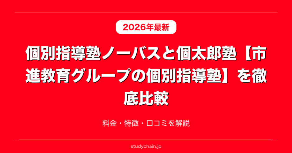個別指導塾ノーバスと個太郎塾【市進教育グループの個別指導塾】を料金や口コミや指導体制や指導方針など項目ごとに徹底解説します。個別指導塾ノーバスと個太郎塾【市進教育グループの個別指導塾】を検討している方に向けてそれぞれどういう方におすすめなのかや個別指導塾ノーバスと個太郎塾【市進教育グループの個別指導塾】の違いやメリットやデメリットについてもそれぞれ解説します。個別指導塾ノーバスと個太郎塾【市進教育グループの個別指導塾】の良い口コミと悪い口コミも比較しながら紹介するのでぜひ実際の声も含めて参考にしてみてください。