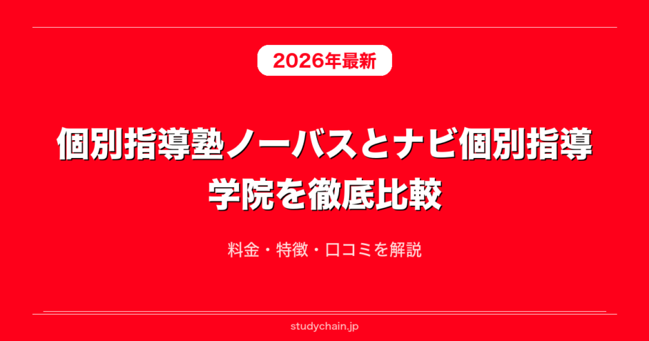 個別指導塾ノーバスとナビ個別指導学院を料金や口コミや指導体制や指導方針など項目ごとに徹底解説します。個別指導塾ノーバスとナビ個別指導学院を検討している方に向けてそれぞれどういう方におすすめなのかや個別指導塾ノーバスとナビ個別指導学院の違いやメリットやデメリットについてもそれぞれ解説します。個別指導塾ノーバスとナビ個別指導学院の良い口コミと悪い口コミも比較しながら紹介するのでぜひ実際の声も含めて参考にしてみてください。