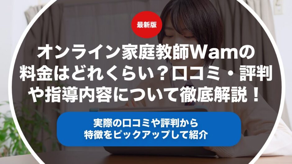オンライン家庭教師Wamの料金について入会金や月謝や授業料や教材費用についてそれぞれ解説します。また実際の口コミや評判をもとにオンライン家庭教師Wamの指導内容の特徴やどんな人におすすめの塾なのかどうか具体的に解説します。