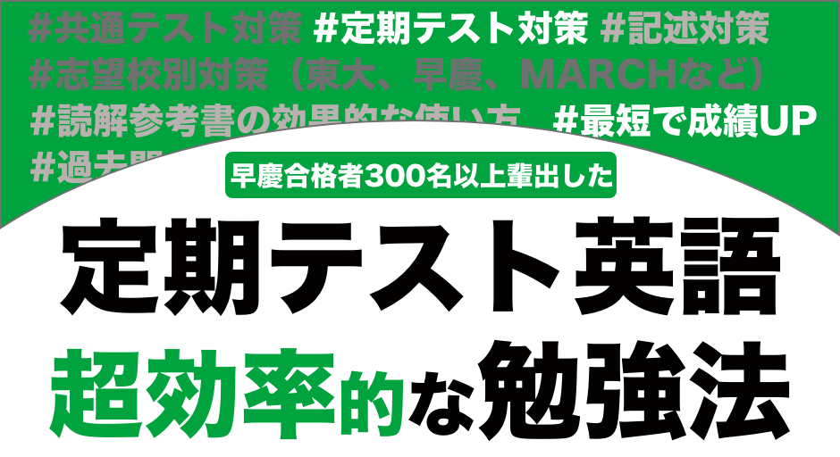 これまで早慶に現役生および浪人生を含めて合計で300人以上合格者を輩出してきました。その中で定期テストの英語で満点や9割が取れるようになった生徒もたくさんおり、実際に指導する中で赤点からでも定期テスト9割まで到達した英語の勉強法や使ってよかった参考書およびおすすめの定期テスト英語の勉強の順番を解説したいと思います。