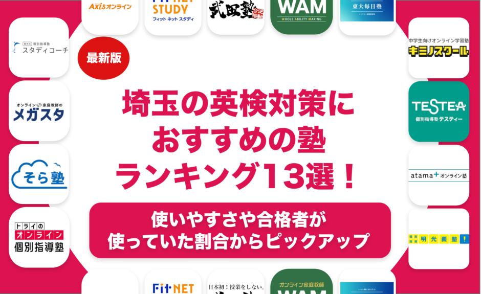 埼玉の英検対策におすすめの塾を13個紹介します。埼玉の英検対策におすすめの塾をそれぞれレベル別にかつ目的別に実際に通っている人の口コミをもとに作成します。埼玉の英検対策におすすめの塾を料金や特徴で比較しながら解説します。埼玉の英検対策におすすめの塾の中でも英検対策初心者向けの塾や英検1級や英検準一級や英検2級など応用レベルの英検対策ができる塾をそれぞれ紹介します。