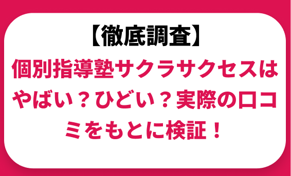 個別指導塾サクラサクセスなど塾選びにおいて個別指導塾サクラサクセスがやばいもしくはやめた方が良いと言われる原因となった口コミを紹介します。
