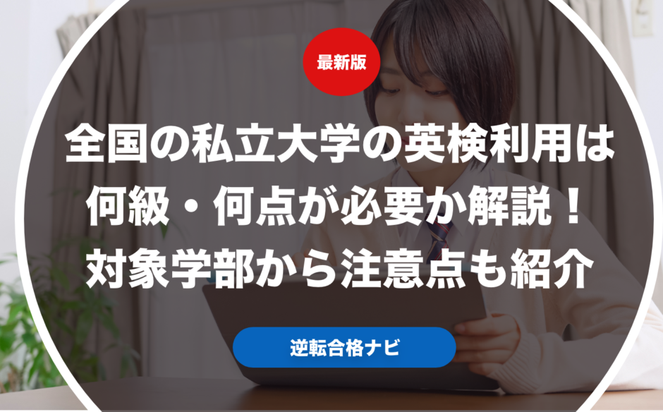 全国の私立大学の英検利用は何級・何点が必要なのか具体的に解説します。また実際に全国の私立大学で英検利用ができる学部からそれぞれの英検利用で合格するための注意点も紹介します。さらに実際に全国の私立大学志望の受験生や保護者向けに英検利用の優遇措置やおすすめの受験戦略についても合わせて解説します。