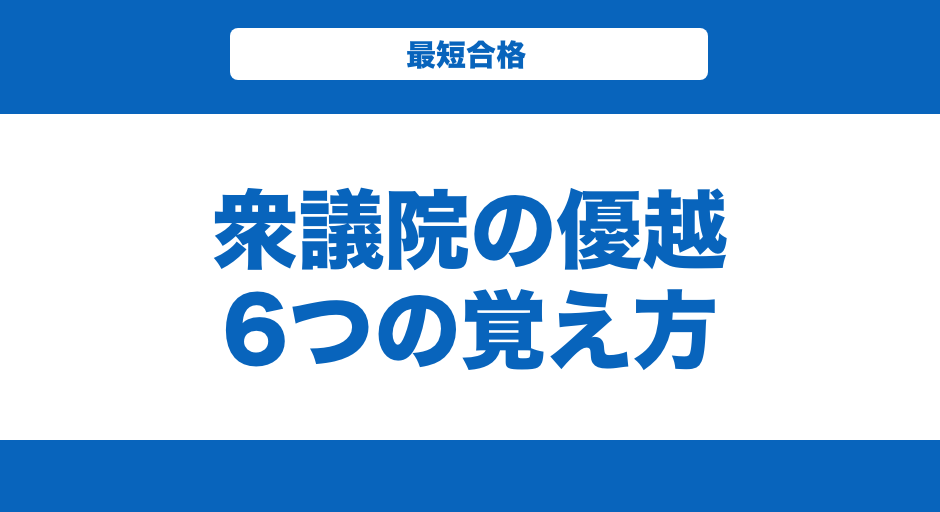 衆議院の優越6つをそれぞれの特徴とおすすめの覚え方を解説します。また衆議院の優越の一覧表も紹介します。衆議院の優越のそれぞれを練習問題付きで解説するので中学生の方でも高校生の方でもわかりやすいように解説しているのでぜひ参考にしてみてください。