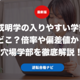 早慶の倍率から見た穴場学部は明確です。慶應義塾大学の商学部A方式は倍率2.6倍で早慶全体の中で最も低い数値となっています。早稲田大学では教育学部の数学科C方式が共通テスト利用で倍率が低く穴場学部です。