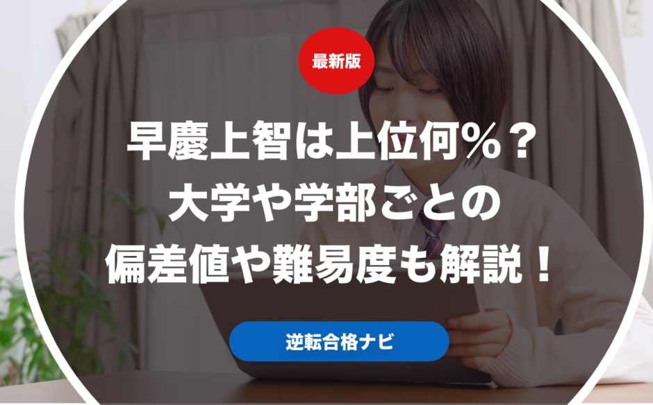 早慶上智の平均偏差値は64から70程度であり、偏差値64以上は全受験生の上位8%以上にあたります。