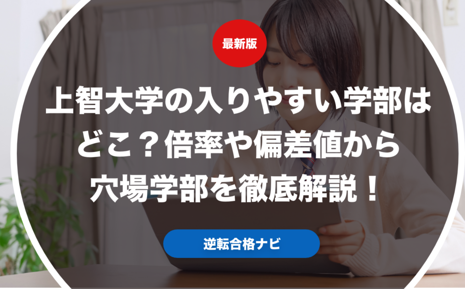 上智大学の入りやすい学部と穴場学部を具体的に解説します。また上智大学の倍率の低い穴場学部や偏差値の低い受かりやすい学部学科をそれぞれ解説します。上智大学志望の受験生やその保護者の方はぜひ参考にしてみてください。