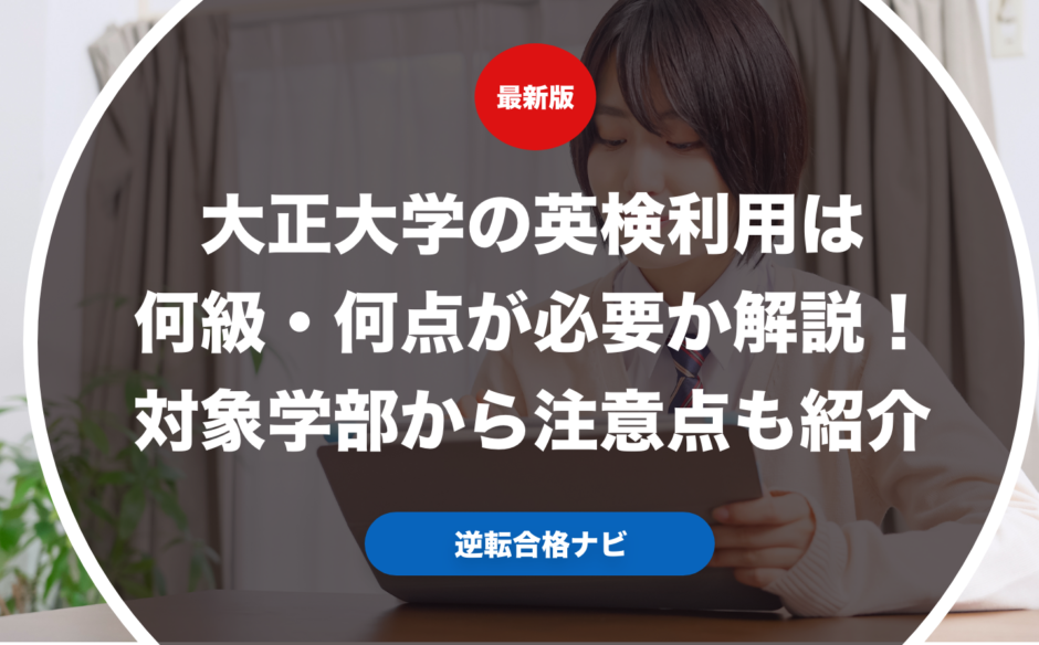 大正大学の英検利用は何級・何点が必要なのか具体的に解説します。また実際に大正大学で英検利用ができる学部からそれぞれの英検利用で合格するための注意点も紹介します。さらに実際に大正大学志望の受験生や保護者向けに英検利用の優遇措置やおすすめの受験戦略についても合わせて解説します。