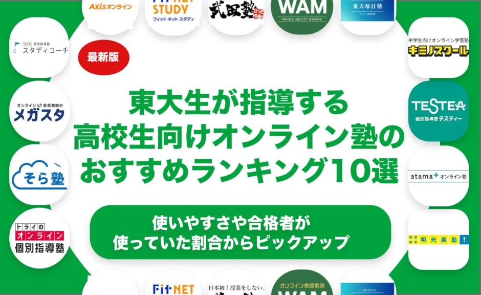 東大生が指導する高校生向けオンライン塾をランキング形式で紹介します。