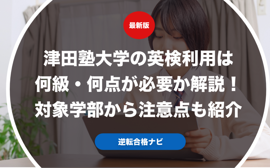 津田塾大学の英検利用は何級・何点が必要なのか具体的に解説します。また実際に津田塾大学で英検利用ができる学部からそれぞれの英検利用で合格するための注意点も紹介します。さらに実際に津田塾大学志望の受験生や保護者向けに英検利用の優遇措置やおすすめの受験戦略についても合わせて解説します。