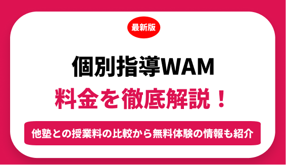 個別指導WAMの料金を授業料と入会金と月謝など年間にかかる費用も含めて解説します。他の個別指導塾の料金とも比較しながら個別指導WAMの料金は高いのか安いのかについても解説します。個別指導WAMの料金や費用を正しく知った上で入塾を検討したいという方はぜひ参考にしてみてください。