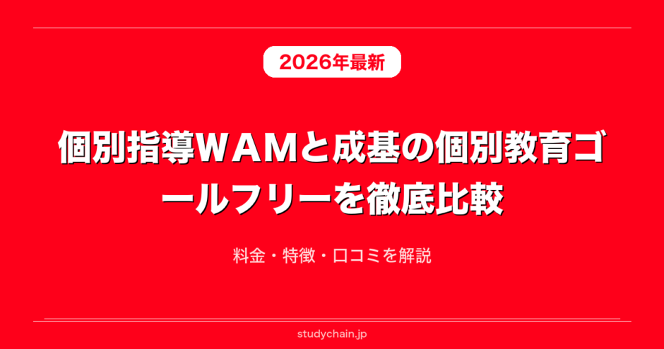 個別指導WAMと成基の個別教育ゴールフリーを料金や口コミや指導体制や指導方針など項目ごとに徹底解説します。個別指導WAMと成基の個別教育ゴールフリーを検討している方に向けてそれぞれどういう方におすすめなのかや個別指導WAMと成基の個別教育ゴールフリーの違いやメリットやデメリットについてもそれぞれ解説します。個別指導WAMと成基の個別教育ゴールフリーの良い口コミと悪い口コミも比較しながら紹介するのでぜひ実際の声も含めて参考にしてみてください。