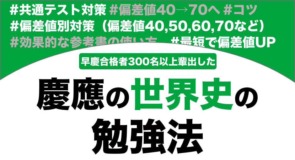 慶應義塾に合格できる効果的な世界史の勉強法を解説します。慶應義塾の世界史対策に実際にやってよかった勉強法とその順番も合わせて紹介します。また慶應義塾の世界史対策におすすめの参考書も合わせて紹介します。