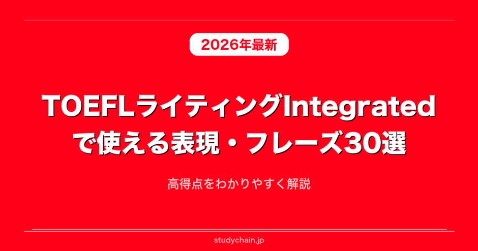 TOEFLライティングIntegratedで使える表現・フレーズを高得点をわかりやすく解説をまとめました。ライティングで使えるTOEFLライティングIntegratedの英語表現・フレーズを使うシーンや例文付きで詳しく解説します。TOEFLライティングIntegratedで使える英語表現・フレーズをもっと知りたい方はぜひ参考にしてみてください。